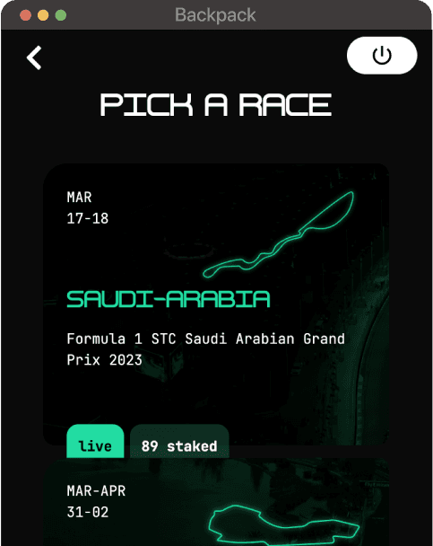 Everytime a race takes place in real life, you can bet on it. Customize your car with the traits of your choice and stake it for the race you want to bet on.
